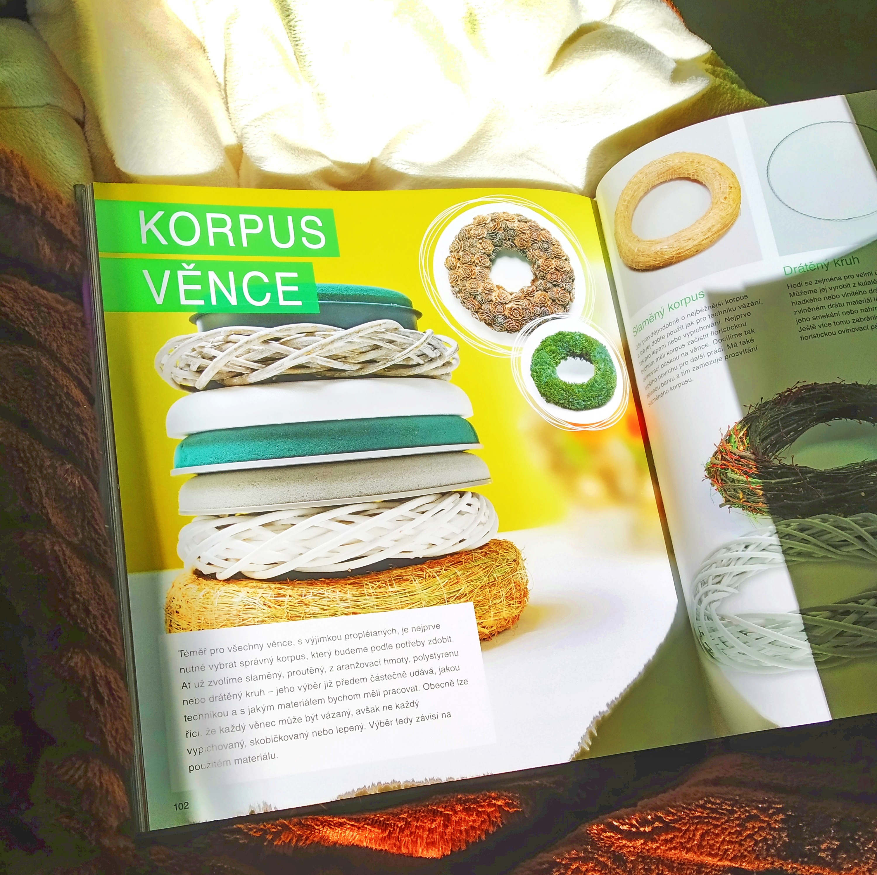 Základem je korpus, na který budeme připevňovat další komponenty. I tady už máme více možností – buď ho můžeme koupit nebo si ho vyrobíme ze slámy/sena/dřevité vlny a upevníme do požadovaného tvaru drátkem či provázkem. Můžeme se buď držet obvyklého kulatého tvaru, ale v kurzu jsou i rovné věnce. Na tento podklad pak naneseme další vrstvu, kterou opět důkladně uchytíme. Tradičně používám jehličnaté větvičky. Ale ani tady se fantazii meze nekladou. Můžeme použít nakrájená korková kolečka, skořápky z ořechů či celé ořechy a pokrýt jimi skoro celý korpus (spodní část doporučuji nechat volnou).