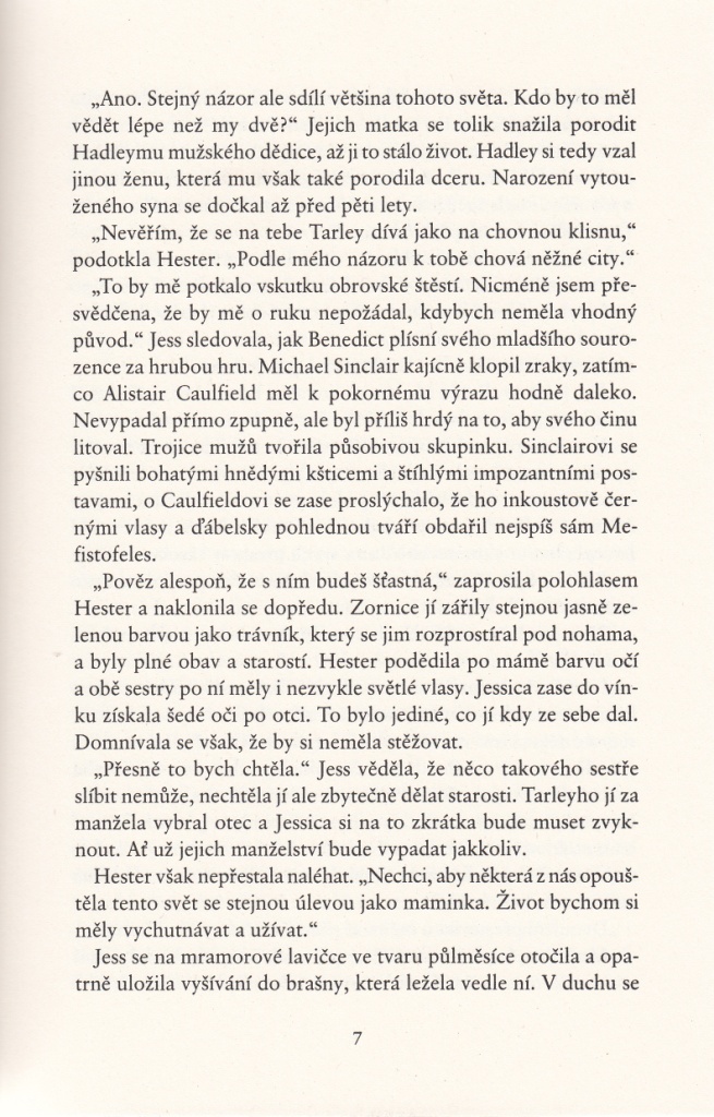jsou Jessica a Alistair - dva mladí lidé, které spojuje vášeň. Ona ovšem vstoupila do manželství, které trvalo sedm let, s jiným mužem. V předvečer své svatby však do své mysli navždy zapsala vzpomínku na Alistaira Caulfielda. Viděla jej v situaci, jakou si taková nevinná mladá dáma nikdy nedokázala představit. Stala se svědkem hříšné podívané. Tento výjev ji šokoval a podivně vzrušil zároveň.V jejím manželském životě ji Caulfieldův obrázek neopouštěl a vyvolával v ní nemravné představy.Alistair utekl od představy nádherné lady Jessiky s vášnivým pohledem v očích, která ho přistihla v nemravné situaci, až do Západní Indie. Tam se z něj stal bohatý obchodník. Jessica po sedmi letech ovdověla a náhodou se objevila na Alistairově palubě. Setkají se, podlehnou pokušení?