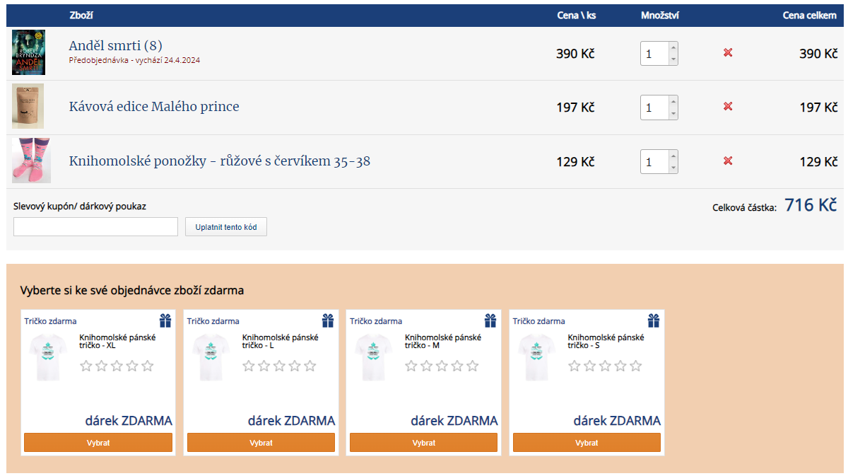 - vyberte si cokoliv z našeho knihomolského merche a vložte do košíku