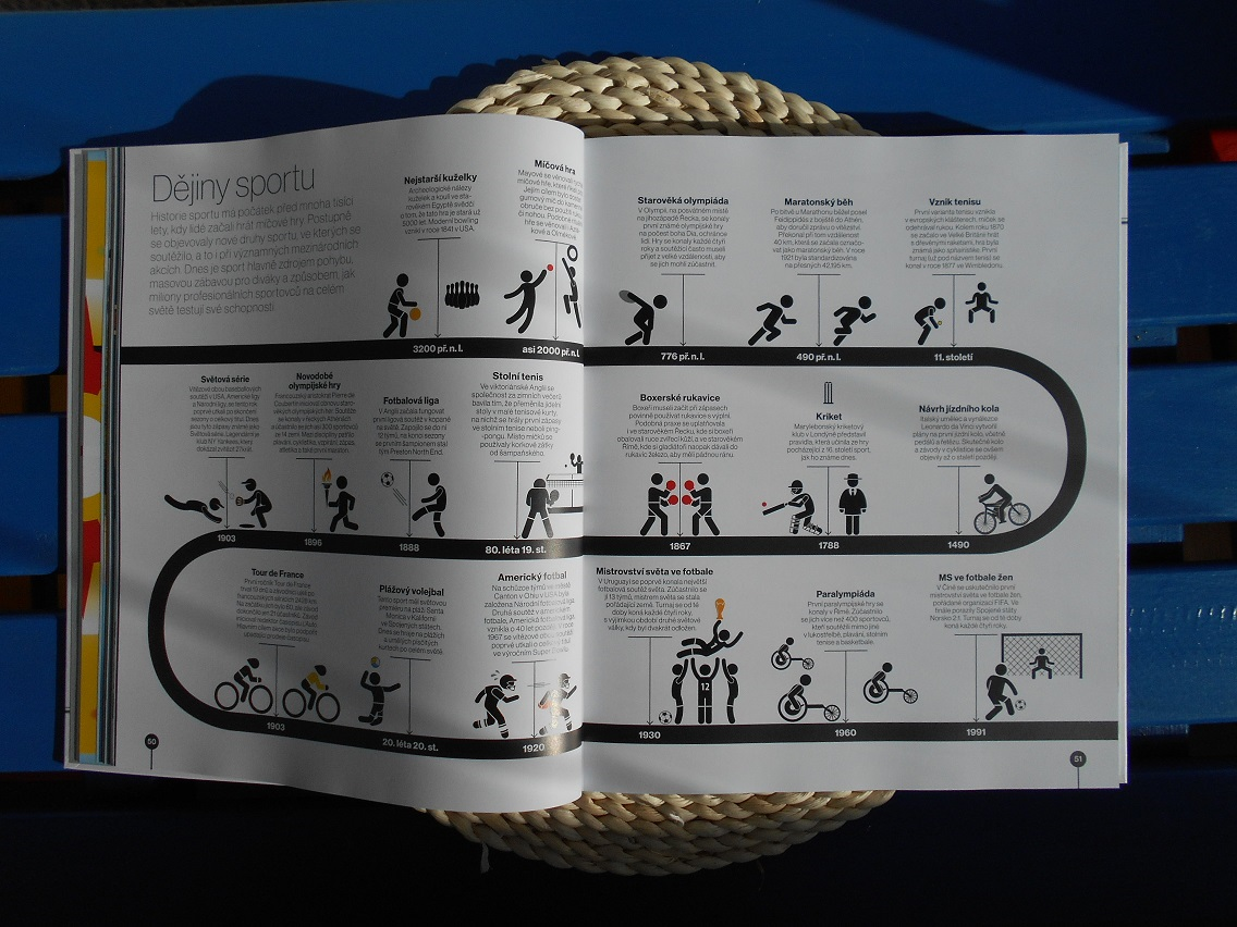 To, co je ale geniální, je to, že do těchto období vpašovali kapitoly s informacemi, které se ve škole nedozvíte. Kluky nadchnou kapitoly o zbraních, o bitvách nebo kapitoly věnované kriminalistice a špionáži. Holky zaujme móda, umění nebo historie feminismu. Každá z těchto kapitol je pojata chronologicky jako přehled a nechybí v ní řada ilustrací nebo fotografií. Autorům se povedlo vyhmátnout to, co je zábavné a co zároveň patří k všeobecnému přehledu. Příkladem můžou být kapitoly o robotech nebo internetu.