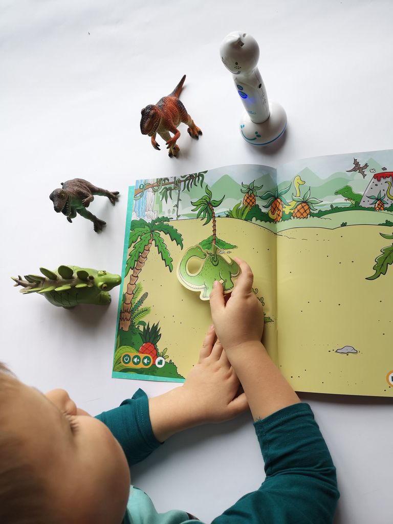 Elektronická ALBI tužka z těchto samolepkových knih však vykouzlí mnohem větší zábavu. Stačí se tužkou dotknout kterékoli samolepky a tužka vám sdělí, o co jde. Jakmile načerpáte všechny informace, stačí se v knize přepnout na ikoně noty a každá samolepka, které se dotknete, vyloudí legrační zvuk. Takže teď na vlastní uši uslyšíte, jak se směje čarodějnice, píská skřítek nebo třeba jak se vaří lektvar. A ve světě dinosaurů zjistíte nejen jak se jednotliví dinosauři jmenují či jaké vydávají zvuky, ale také třeba jak sopka chrlí lávu. Věřte, že zvuky jsou v obou knihách opravdu realistické, až vás to vtáhne do jiného světa. Naše děti od toho teď nemohou odtrhnout oči ani uši. 😊