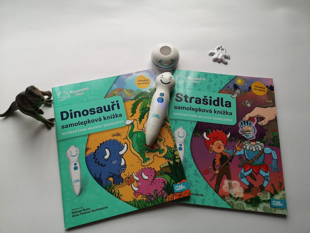 Můžete si vybrat ze dvou variant. ALBI vydalo Samolepkovou knihu Dinosauři a nebo Samolepkovou knihu Strašidla. Obě knihy patří do série Kouzelného čtení. To znamená, že pokud chcete samolepkové knihy využívat naplno, je dobré mít Elektronickou Albi tužku. Investice do této kouzelné tužky se vám určitě vyplatí, neboť produktů k ní je celá řada. A s kouzelným čtením se nejen děti všech věkových kategorií zabaví, ale hlavně se nenásilnou a hravou formou toho mnoho naučí.