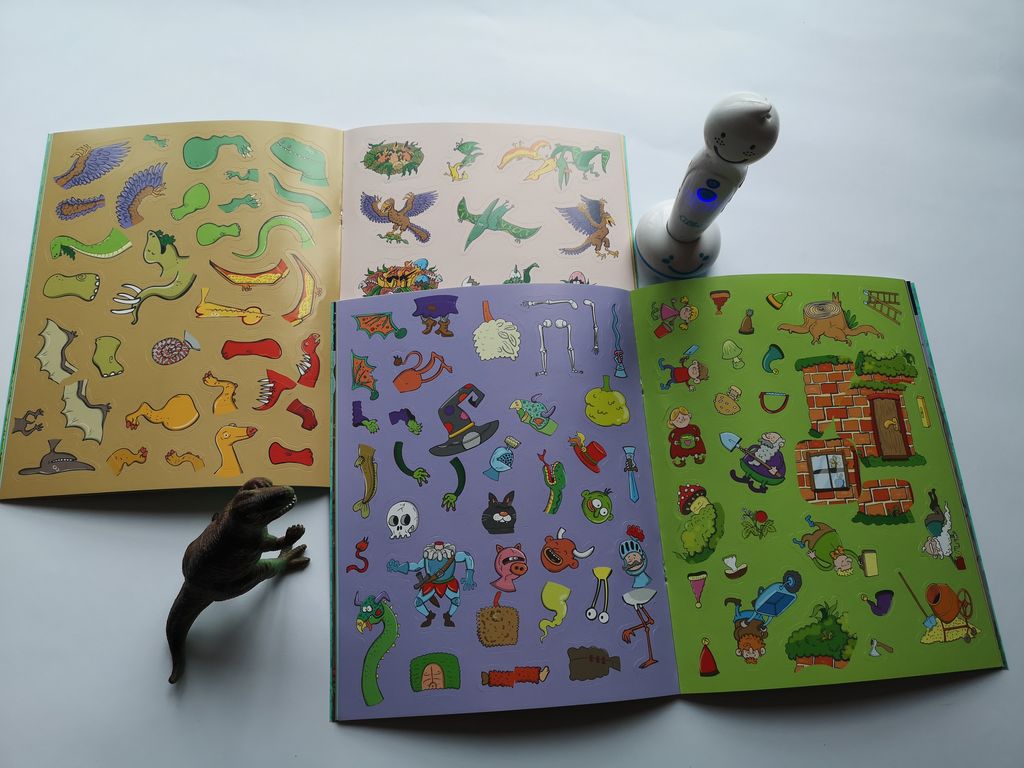 Obě samolepkové knihy, Dinosauři i Strašidla, mají 16 stran, na kterých si můžete vytvářet vlastní příběhy. K tomu obě obsahují ještě navíc 8 stran plných samolepek, takže i kdybyste třeba někde na cestách elektronickou ALBI tužku zapomněli přibalit, nebo se vám nečekaně vybila, určitě se vaše ratolesti nudit nebudou.