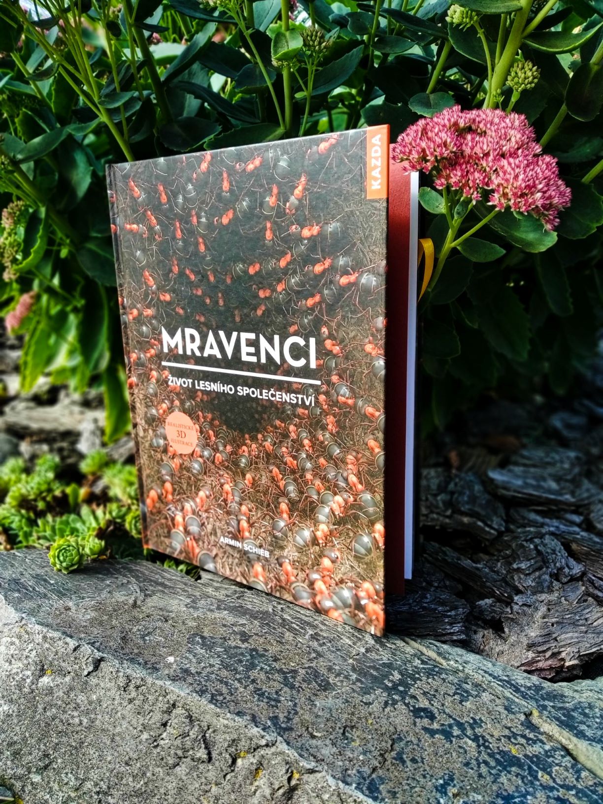 Znáte mravence, že? Ty malinké pišišvory, na které se musíte dívat z pár centimetrů, abyste spatřili trochu víc než malou černou tečku. Velkoformátová publikace Mravenci nám tyhle pracovité tvorečky, konkrétně mravence lesní, přiblíží v mnoha směrech. V tomto případě i co se týče velikosti – koukneme se na ně úplně zblízka a ve 3D. Ohromily mě už první dvojstrany, na nichž je vyobrazeno tělo dělnice s popiskem pár desítek částí těla. Wau. A můj údiv neubýval ani s dalšími stranami. Detailně si prohlédneme, co mravenci skrývají ve svých tělíčkách. Ke všemu najdeme popisky a vysvětlivky. O informace, nad nimiž člověk žasne, není nouze. Pár vám jich prozradím, ale zdaleka to není vše, nebojte, stále budete mít co objevovat.