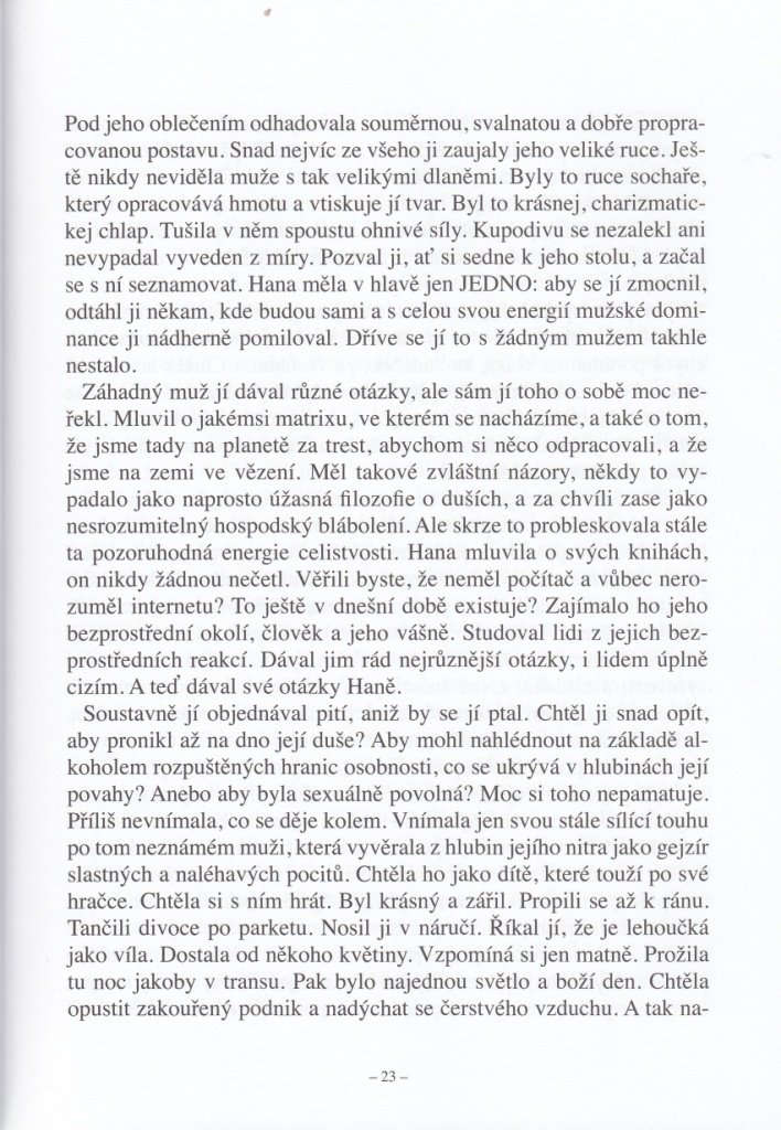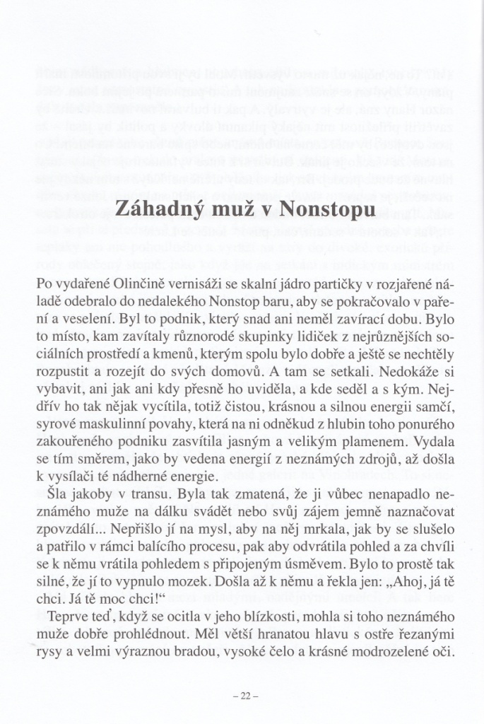 Podnikatelka Hana odmítá známého pražského politika, který se jí dvoří a zamiluje se do záhadného svobodomyslného muže, kterého potkala v Nonstop baru. Vášnivý, romantický a osudový vztah, který mezi nimi vzniká, není bez otazníků. Podaří se Haně zkrotit problematického milence? Kdo má rád seriál Sex ve městě, kterým se mimochodem autorka nechala inspirovat, oblíbí si i tuto eroticko-pornografickou novelu.Ukázka z knihy Sex v Praze (Jana Collins)