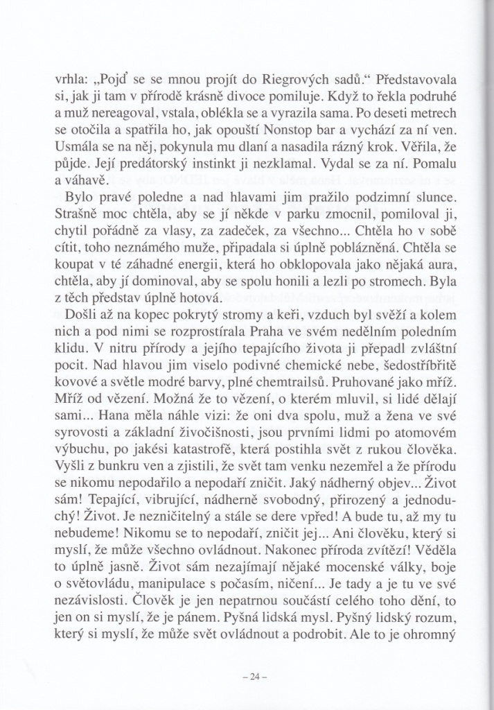Erotická novela o nespoutané vášni uprostřed spoutané Evropy - tak zní podtitul knihy Sex v Praze, která je prvotinou Jany Collins (vlastním jménem Dr. Zuzana Adamson Krupičková). Téma erotiky a sexu je teď na knižním trhu v kurzu a pokud příběhů nabitých milostnými zážitky nemáte stále dost, pak bude Sex v Praze vašim šálkem kávy.Majitelka luxusní restaurace Milena hladá své štěstí v manželství s Robertem a stále má co objevovat, oduševnělá herečka Lucie prožívá krátkodobé vztahy, než se seznámí s Francouzem - studentem politologie Christophem a okouzlí ji jeho galantní přístup k ženám.