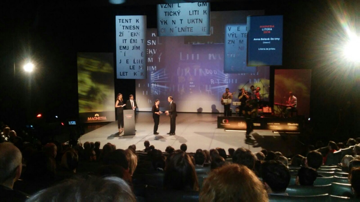 Anna Bolavá přebírá cenu za knihu Do tmy