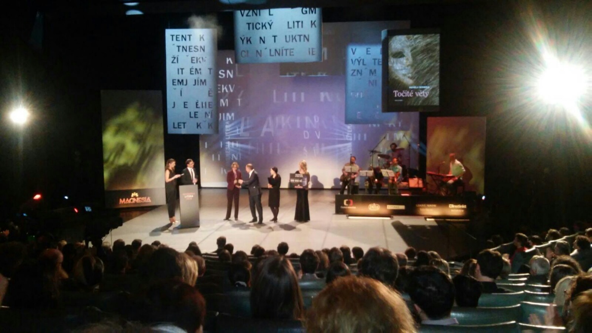Daniela Hodrová přebírá cenu za knihu Točitě věty