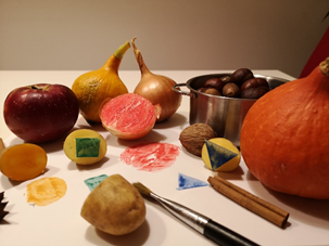 Máte nemocné děti nebo jste v karanténě? Nevadí. Rozhlédněte se doma. Uvidíte, že i tam naleznete vhodné materiály pro tvorbu a zpříjemnění pozimních dnů. Určitě se budou hodit jablka, dýně, cibule, ořechy, brambory, mrkve, citrusy, ale i další druhy ovoce a zeleniny. Nezapomínejte však ani na koření, jako je skořice, badyán nebo hřebíček. Rozhodně se vám budou hodit nejrůznější provázky, kusy látek, špejle nebo párátka. To už je pořádný základ nejen pro veselé figurky.